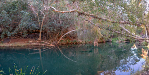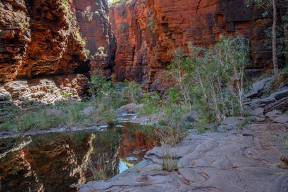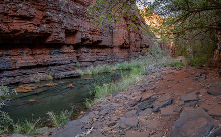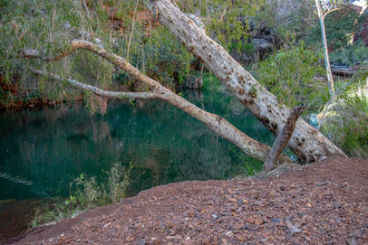 There was a crowd of people coming in so with enough pictures on the memory card we decided this was a good time to depart but not before trying to take a few handheld long exposure shots of the stream as it flowed down into the chasm. With some success we eventually moved on and back towards the tricky ledge. Having made it past once we had the move down pat and were soon on the shaded part leading back to the climb out. Having rushed through here before it was nice to take it slow and notice a few things I had missed like the extensive root system of one paperbark tree and the nice reflections in one of the pools. With the day warming up, the steep climb out of the gorge was a bit of a challenge but with the promise of a swimming spot at our next hike at Joffre Gorge, we weren't feeling too bad. We made it back to the car slightly sweaty but pleased with another fantastic gorge hike.