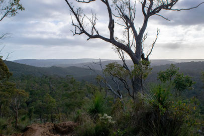 As you approach the edges of Jorgensen Park, an old golf course that has since been converted into a popular dog walking area, you get a feel for where the old fairways used to be. A fair amount of rehabilitation work is occurring in this area to clear up the streams and convert the bushland into something more natural. I kind of enjoyed the dense wattle that lit up with bright yellows in winter and spring (see gallery) but understand why they are doing what they are doing. Walking up the hill and through some more mature forest you reach the edge of one of the bigger open spaces at Jorgensen Park and the chance to see some locals walking their dogs. Skirting around the edge or walking through the middle of the field (your option), you reach the forest on the edge of Kalamunda National Park and climb up to a lookout spot that is just magical at sunrise. With views looking over the Piesse Brook Valley, this is a spot I always stop at for at least 10 minutes just to sit in the stillness and breath it all in. From here you can trace your journey for the next few kilometres as you descend down into the valley and rise up again before reaching the power lines that are a spec on the horizon. I've spent quite a few sunrises here and it's not a bad way to start a days hiking.