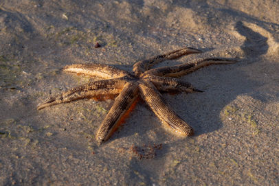 Turns out it was great conditions to go for a surf and there was a constant flow of surfers heading out towards the breaks ready to catch a wave or two. With my new camera and lens, I sat near the limestone formations and snapped away as the surfers had varying success at riding the barrels way offshore. I think I missed my calling in life as a surf photographer but perhaps it had more to do with the excellent lighting conditions I had that afternoon. This spot was amazing for capturing the surfers walking out pretty much to the reef as the water was shallow enough and it made for some cool photos as they stared down the waves crashing in front of them. While waiting for the sets to roll through I had a bit of an explore of the area and found a cool six and half legged starfish that must have been in the wars. It was on the beach instead of in the water but it slowly made it's way back to the shallows over the course of the evening. I sat on that beach for over an hour and was lucky enough to capture the famous green flash phenomenon that occurs as the sun dips below the horizon (see last photo of the below gallery). With a fantastic day on the Cape to Cape over, I headed back up the hill and enjoyed fish and chips for dinner along with a couple of cheeky glasses of wine before retiring to my tent.