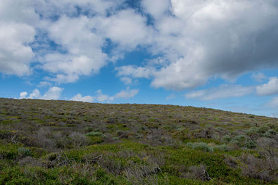 Immediately as I stepped onto the now much sandier and less wheelchair friendly track, the sun decided to mock me and made an appearance. With Sugarloaf Rock now bathed in sunshine, I decided against doubling back and instead chalked it up to fate. With the chances of seeing humans a lot less now I wasn't on a popular day hiking section, it was a nice surprise to come across some wildlife in the form of some Blue Tailed Wrens and a pretty chill Bobtail Lizard. The wrens wouldn't stay still for a photo so all I got were blurry snaps but the Bobtail was more than willing to pose for a few before deciding that the undergrowth was probably a safer option. This was what I'd hoped was the first of many reptile sightings along my Cape to Cape experience given the weather was warming up and the exposed scrub is where they thrive. Moving on, the track takes you along the coastline with shin to waist high scrub flanking the edges so it was fairly easy to see what was up ahead. This first day is a bit of an outlier in that you can see the end of the day pretty early on given the straight line the coast forms towards Yallingup. This does mean that unfortunately the view doesn't change much as you look further into the distance so I instead focused on what was down below the limestone cliffs, the wildflowers along the track and the views looking up the hills to the east.