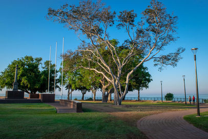 I would love to have more photos looking back at the Darwin CBD to give you a sense of perspective but during my visit they had applied some treatments to the grass to repair damaged areas so most of the area was roped off and covered in that fake green foam that is meant to encourage growth. The path takes you further along the esplanade, switching between open views of the water and tree lined pathway. One feature of the area were bench seats with a metal frame complete with climbing plants that provided shade. I'm not sure how effective these are in the middle of the day but they certainly looked cool. Reaching the USS Peary Memorial, this was something I was looking forward to, having heard all about it on the boat tour. The USS Peary was a US ship that was sunk during the Darwin bombings and wasn't located until decades later. There is a whole history with a local salvage expert (bit of a character) and the items he recovered from the wreck. Long story short, one of the deck guns was finally recovered and now sits as the memorial, pointing out to where the wreck lays in the harbour. Just past the memorial there is one final lookout taking in the waters of Doctors Gully and it's a really cool place to watch the massive tides that Darwin Harbour experiences. I decided to end the walk here as the grassed esplanade finishes near this point and I still had to walk back to the hotel. You are still close to the CBD here so can finish your morning walk with a nice breakfast at one of the many cafes in town.