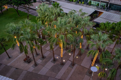 I thought about taking the elevator up and walking across the city icon but decided to admire the bridge from below and walk along Kitchener Drive to see if the WWII Oil Storage Tunnels were open for a visit. They weren't open for another 90 minutes but looked like an interesting thing to do if you're visiting. Right next to the tunnels are stairs leading up the hill towards the connecting road I was using to reach the Esplanade area. This area is very green with plenty of flowering plants hanging off the side of the hill. Crossing Hughes Avenue and making my way up another set of stairs, I was on the esplanade and presented with the impressive Supreme Court and Parliament buildings. Manicured lawns and palm trees are the order here and it does create a nice open space from which to admire the lovely white buildings. A nice old tree towers over the space between them and the picturesque view of the Parliament building opened up more as I moved along the path. I really loved seeing this building as it has a presence to it along with being beautifully designed. With the palm trees surrounding it, the fantastic overarching roof line and the bright white façade, it gave off strong South Pacific vibes that had me thinking of being in Hawaii.
