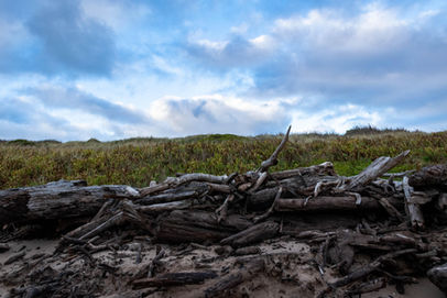 I love a good rummage around a rocky headland so if the trail was a simple path to a lookout then I would be more than happy to keep on exploring if there was an accessible beach or two. From the car park you can see the lookout that is set on top of a nearby dune so it was quite clear that the quoted length was not underestimated. Walking along the boardwalk, the views start to open up the further you go, with the mouth of the Arthur River providing the main feature until you get those stunning vistas overlooking the expansive Southern Ocean. With some moody weather on my first visit, the blues and greys combined to give an atmospheric feel to the afternoon with splashes of gold light streaming through the clouds to the west. We visited the lookout first and I was pleased to see the artwork in the centre of the lookout showed the fauna native to the area with their traditional names. While the lookout was nice, I was keen to explore the wilder headland and beach to the left. As we found out on a river cruise leaving from Corinna, the West Coast of Tassie is littered with driftwood along almost every beach. It was no different here with large grey timbers strewn all along the rocks and nearby beach.