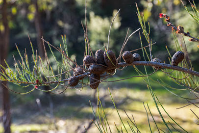 Winding up and down small elevation changes, this part of the Blue Wren Ramble Trail crosses Ellis Brook three times, with little foot bridges at each crossing. These along with the tunnels of Mouse Ears provided some really cool photo opportunities, with the tunnels being some of my favourite scenes from previous visits. Around the third crossing of Ellis Brook, the thicker vegetation starts to disappear and a lovely section of Wandoo opens up. Heading up a hill, the trail looks like it continues right up a steep hill, and while there is a track leading up the hill, it only takes you to an active quarry. Performing a little U-turn, this is the final little stretch of the Blue Wren Ramble Trail before it ends at the Valley Head car park. This is one of my favourite little areas of Ellis Brook, with the golden Wandoo trunks glowing in the sunlight and plenty of wildflowers lining the trail including Blue Stars, Woolly-flowered Grevillea, Lemon-scented Darwinia and Pincushion Coneflower.