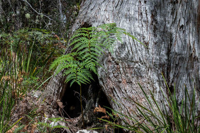 Leaving the family behind, I reached the blue wooden signs that tell you the path ahead is within South Bruny National Park. Excited by this prospect as it meant nothing but fantastic nature ahead, I soon came across the decision point for all loop trails, clockwise or anti-clockwise. To the left (clockwise) takes you to Grass Point before climbing up to the Fluted Cape, while right (anti-clockwise) takes you directly up to the summit of the Fluted Cape. I was enjoying the walk along the edge of Adventure Bay, so decided to continue on this path, a decision that I feel makes for a better hike later on. Continuing on, the walking was excellent as little rocky beaches started appearing down by the water. I stopped at a couple and loved the views across the water, along with the enormous trees growing right along the edge of the bay. After passing some of the thickest trees, including one that had a few large limbs detach themselves recently, I entered the She-Oak section of the walk.