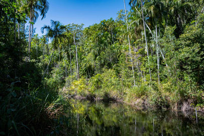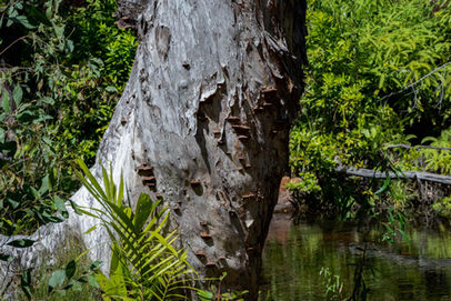 Arriving at a metal bridge over Cascades Creek, the scenery through here greatly improved as you switch from the dry savanna woodlands to the monsoon forest lining the creek. Swimming downstream of the bridge is banned as part of croc safety and to be honest, it didn't look very appealing anyway. Leading up to the collection of stumps over a muddy section, the trail felt a little ramshackle but once you hit the sandy trail and follow the edge of the creek, the scenery changes to a more natural and pleasant looking affair. Looking upstream, there was a magical shot of the creek with some fallen palms making a criss-cross pattern, leaving a lovely reflection in the water. Walking along a sandy path on the edge of the creek, this is the start of some pretty hiking that leads all the way to Curtain Falls. The gentle waters of the creek combined with the increased number of palm trees and thicker vegetation creates a tropical looking scene that was a delight to photograph.