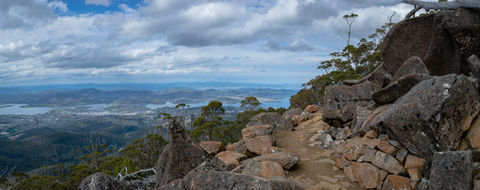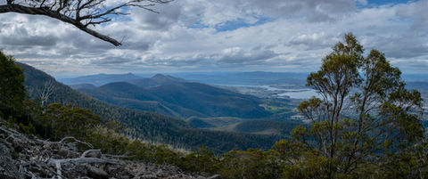 My pace at this point was not quick at all given I had the marvel of the Organ Pipes to my left and the expansive views of Hobart and the Derwent River to my right. I had a brief period where there was minimal cloud cover above the pipes so furiously shot away trying to capture the whole thing in one panoramic (it only just fits). Prying myself away from this spot was made better by the exposed track leading away from the Organ Pipes and towards The Chalet. Some of the best views from this trail are to be found here as the scree fields rolling down the mountain provides a lack of tree cover on the slopes. Feeling like the trail just skipped off the side of the mountain, there are some really cool spots here where you can soak it all in and let your gaze wonder from distant object to distant object. Along with the views down towards the city and river, the views to the north provided you with an unspoiled landscape that looked very similar to the views near the summit of Bluff Knoll. I love the sight of silhouetted hills and moody skies so was having a fantastic time photographing everything.