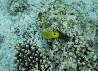 The name Oyster Stacks refers to exactly that, a series of rocky formations where over time the oysters have stacked on each other to create this sharp and solid structure. From where the path heads down from the car park there are a series of them heading south and depending on the tide, you might see a couple poking their head above water. The best way to see them is to follow one side heading south and then head back north on the other side. Along with the Oyster Stacks there is some great coral reef here extending out to the west and I deviated between that and the stacks depending on what marine life I saw. Heading out to the first of the Oyster Stacks, this snorkel would be a case of avoiding the jellyfish at all costs (they do sting), something that was quite difficult at times due to the sheer number of them and the currents around the Oyster Stacks. Early on I spotted a large school of either Bream or Drummers that to me seem to be the happiest fish in the world as most photos always have a few of them smiling brightly at the camera. I was pleased to see that the fish like to attack the jellyfish as I'm not a big fan of them either, with the Threadfin Butterflyfish really getting stuck in.