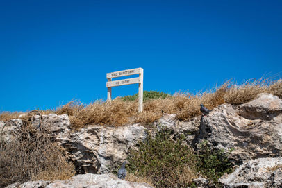 We shifted back out towards deeper water and found the good bits of the reef although visibility was not fantastic. Spotting some small schools of fish and a couple of colonies of purple sea urchins, there were some cool finds in and around the reef. For better photos check out Donovan's Penguin Island post as he has the proper housing for his camera, while I was using an old GoPro Hero 4. With a good swim under our belts and not much else to explore we headed back towards the beach and set about drying off and packing away all our gear. A crowd had gathered on the beach, both from kayaks and walking around so this is obviously the popular snorkelling spot on the island. Picking our way through the rocks again we found ourselves at the stairs leading up to the final boardwalk section and back towards the Discovery Centre. There is another lookout to the left and of course we decided the check it out, seeing the area we had just snorkelled and off into towards the protected northern side of the island. Walking back down the boardwalk provided a really cool photo (the one I used as the cover shot) with Donovan and Alissa strolling on the path that leads your eyes down and towards the sheltered bay with the jetty in the distance and the mainland further on. As we reached the bay Donovan and I decided to check out the beach and the limestone caves where there might be a chance of sighting a penguin.