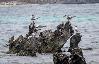 Activity Two - Snorkeling at Salmon Bay - With SeaBiking done it was decided to have a short break at the main settlement before heading straight out to Salmon Bay for the main snorkeling for the day. With the winds remaining fairly light it was a good decision so after an ice-cream we made our way to the bus stop and had soon been deposited at the Salmon Bay bus stop. Having visited this spot back in 2017 when we hiked the Wardan Nara Bidi, I knew it was a special place. My podcast partner and head guru of The Long Way's Better suggested this as another great spot for snorkelling so everyone was keen to check it out. Unlike Little Salmon Bay and Parker Point, there is no formal snorkelling trail but I think snorkelling is one of those activities where a trail is sometimes a bit counter-intuitive to follow as most of the time you are chasing fish and don't realise what direction you're headed. While everyone was getting their stuff ready I whipped out my long lens (for the camera) and snapped a few photos of the Greater Crested Turns that were calling the rock located just offshore home. Further out there were some shags on another island but even my 200mm lens had trouble getting those in good detail. I had bought Caris her own snorkel set for the trip so she could join in so we all made our way down to the water and did the cold water dance while we put on flippers and got acclimatised to the conditions.