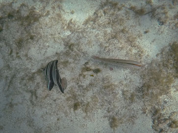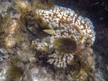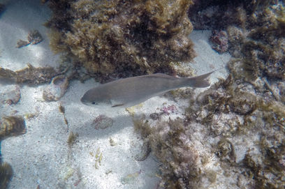 While the southern/western side of the island is more susceptible to the typical SW winds that batter the island, the water was relatively calm in the shallows protected by the reef. Visibility was ok as we all ventured out into the water and immediately there are little pockets of reef full of seaweed, corals and one of my favourite fish, the Western Buffalo Bream (or Djilba using the Noongar word). These curious and happy looking fish are some of the bigger fish you'll see around Rottnest and love to come say hello before swimming away. Plenty of other species could be seen early on including a Rainbow Wrasse and several other types of Wrasse (I'm not very good with fish names). The reefs around Rottnest are unique in that they are have tropical coral species that are usually found much further north (thanks Leeuwin current). Early on we stuck together as a group with lots of pointing to let each other know of a new kind of fish but eventually we all spread out. I wanted to check out the rocky island that was full of Turns and it was fun approaching the slopes of the island from underwater and then turning my gaze skyward to see the birds cautiously watching me, ready to take flight if needed. They were safe though as I was more interested in the marine life today and the expanse of the reef was really impressive to see. Little Salmon Bay and Parker Point had nice reefs too but this one seemed to extend out for a much longer distance.