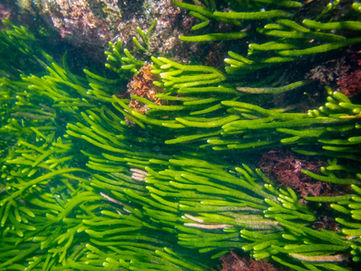 Battling the holiday traffic, I arrived at Bunker Bay to find the car park fairly quiet with humans but loaded with flies when I stepped out of the car. This is the downside of visiting such a stunning location in the summer but I would soon be in the water where they couldn't get at me. Walking down the sandy hill towards the beach, there were a couple of groups setup on the sand and I noticed a couple of snorkelers already in the water. Eager to get in and explore, I headed down to the waters edge and put on all my gear before making the plunge into the cool waters. The rough route the guidebook suggests is to head out to the rocky islands you can see from shore and do an anti-clockwise loop around them. Not being one to argue, I started swimming out to the first island but was slightly disappointed to see that visibility was absolutely terrible. I initially thought my mask was fogging up too quickly but looking above the surface proved this wasn't the case unfortunately. I was here and going to make the most of it so kept moving towards the granite. While fish were few and far between early on, I was amazed by the gardens of different seaweeds and plants that provided an amazing array of colour.