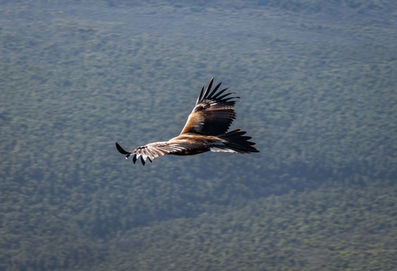 With the end of the climb in sight, we pushed up the final part of the climb that was fairly steep in places. With plenty of opportunity to stop and take photos, I was keeping a close eye on some smaller birds flitting around one of the rocky outcrops when a much larger bird caught my eye. A Wedge-tailed Eagle was circling up above and it was a great pleasure to watch it glide around looking for prey. It got pretty close to where we were and at one point it was right behind where Lou was climbing up. She jokingly remarked that it knew she was exhausted and was eyeing her up. While I was busy trying to get a good photo of the closest eagle, another appeared further up the hill and added to the majesty. That moment provided a great memory and spurred us on to finish the climb up to East Peak. It took over two hours to do the 2km climb but we made it as the sun was getting lower in the sky. I knew we had one big dip and climb to go before we reached the way up towards the Bluff Knoll summit so pushed on to make it by dark. My Garmin watch was flashing a low battery warning so while I waited for Bronwyn and Lou, I fished out my power bank to charge it. The valley was a really nice place to be in the late afternoon light and climbing up the other side provided some glorious views looking back towards the eastern peaks we had climbed earlier that day. Reaching the final part of the off track walking, I followed what looked like a trail but it eventually led us to an area that clearly wasn't going to connect with the summit of Bluff Knoll. After a bit of course correction in the fading light we reached the Leave No Trace sign overlooking the split between Bluff Knoll and 1057 on the map.