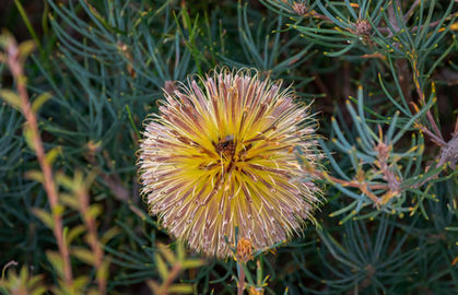 While the grand views were super spectacular, I didn't want all the galleries filled up with wide shots of essentially the same thing, so it was good fortune that there was a bit of details to photograph up here. Being this high and visiting in autumn, I wasn't expecting many wildflowers but the Gravel Bottlebrush (Beaufortia decussata) provided some much needed colour along with a flowering Banksia. Being a sunny day the skinks were out but I could never spot one before it scurried off, which was a tad annoying as I really wanted a shot of one. The insects were playing ball a little better with a Milkweed reminding me of the first time I saw one of these Darth Maul looking bugs on the top of Boonering Hill. Another cool find was a green and brown grasshopper that was perfectly blended into the scrub when it wasn't moving but it's rapid jumping kind of gave it away when you got close. The further we travelled along this part, the more the views looking towards the ridge connecting Moongoongoonderup Hill and the base of the climb up to East Peak came into sight. Just before reaching Moongoongoonderup Hill (going to use MH from now on) was where we turned around last visit so it was nice to know I would soon be on familiar ground.