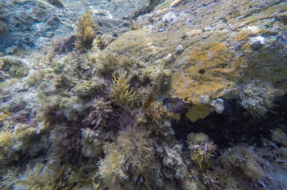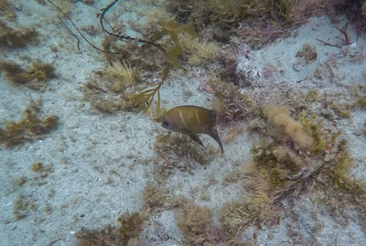 There are plenty of low rocks to help you put your flippers on and there is a good shallow section if you just want to hang out and have a soak in the cool waters. My brother-in-law Haydn was already in the water checking out the protected spot that is best for snorkeling so I made the plunge and joined him. Initially when I walked past here in September, I thought the snorkeling spot was just the wide bay leading around to Canal Rocks so was very impressed when I saw this section that isn't visible from the track. The shallows quickly disappear and there is a deeper spot that is popular for people to jump off the rocks in to so be careful if you're snorkeling in that area. Immediately I was impressed with the edges of the granite that still have the orange colouring under the water that they have above it. All manner of grasses, shells and sea creatures can be found up and down the rocks, along with a good number of fish floating around. It's not a big spot to explore but if the ocean is calm then you can extend your snorkel beyond the rocks (take caution if you do). After a bit of an explore on the western side of the pool, I found Haydn on the southern tip where the waves surge in and create havoc with visibility. This spot seemed to be where the fish really enjoyed hanging out but thanks to the poor visibility when sets roll through, getting pictures wasn't easy. Not helping was my old GoPro Hero 4 that is not easy to use at the best of times so the underwater photos are little subpar.