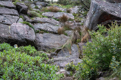 This is a brief dalliance with the rocky terrain that will become familiar a bit further on, with just a small section leading across the scree. The views looking up the mass of rocks is impressive, including a solitary tree in the middle of the mess that has stood the test of time against the flow of moving boulders. Heading back into the vegetation, there were more wildflowers waiting for me including the iconic bright orange of the Showy Dryandra. Hearing a familiar call in the trees on the other side of the creek, I reached an opening and looked for the Black Cockatoos that were the source of the noise. I always love seeing these birds and there were about half a dozen perched up in the canopy of one of the taller trees. The gradients were getting steeper now, and I knew it wasn't going to be long before I reached the quad burning ascent up the many boulder fields that make Toolbrunup such a special place to hike. After negotiating a tunnel of green vegetation, I was presented with the first of the rocky jumbles that would be home until I reached the final part of the climb.